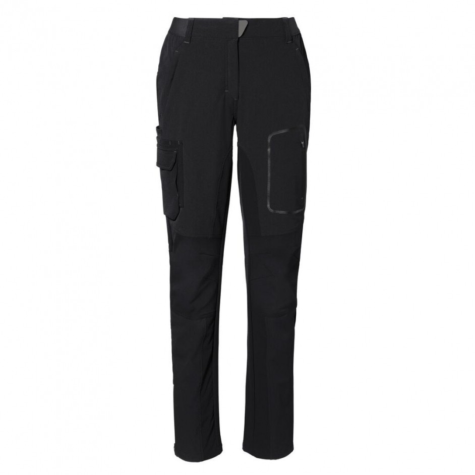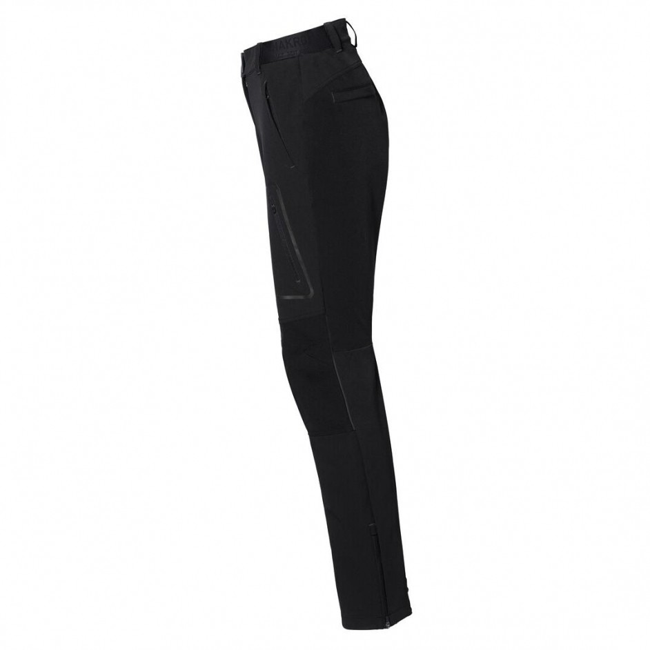 Sportlich leger geschnittene Arbeits- und Freizeithose für Damen, mit verdeckt eingearbeitetem Druckknopf, dehnbarem Hosenbund mit Kordel zur individuellen Weitenregulierung, Reißverschluss und Gürtelschlaufen. Zwei Einschubtaschen und zwei Gesäßtaschen mit verdecktem Reißverschluss, einer Reißverschlusstasche mit Reißverschlussgarage und Reflexapplikation und einer aufwendig gearbeiteten Cargotasche mit eingearbeitetem Reflexband. Beinabschlüsse mit Reißverschluss und Kellerfalte in der Seitennaht. Hergestellt aus elastischem, strapazierfähigem und atmungsaktivem 4-Wege Stretch Softshellmaterial für exzellente Bewegungsfreiheit. Verstärkte Einsätze an Knie, Innenbein und Gesäß aus Ripstop-Material und Safety-Riegel in Kontrastfarbe anthrazit. Alle Reißverschlüsse von YKK®. Ton-in-Ton eingewebtes HAKRO HÄLT.-Logo im dehnbaren Hosenbund, gewebtes HAKRO Label aus hochwertigem Kettsatin mit weichen, ultraschallgeschnittenen Bandkanten für höchsten Tragekomfort am Innenbund.