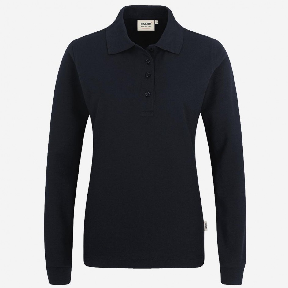 Besonders strapazierfähiges, langärmeliges Poloshirt für Damen, mit hochwertig verarbeiteter, modisch schmaler 4-Loch-Knopfleiste mit extra haltbar angenähten, bruchsicheren Knöpfen, Ton-in-Ton mit dem gelaserten HAKRO Schriftzug. Mit Ersatzknopf, Nackenband und doppelt geriegelten Seitenschlitzen. Die Rippstrickbündchen an den Ärmeln sind durch den LYCRA®-Anteil besonders formstabil. Leasingkoller zur einfachen Kennzeichnung in der gewerblichen Wäscherei und Aufhängebänder im Saum. Hergestellt aus schwerem, besonders pflegeleichtem und funktionellem Piqué aus dem HAKRO Performance-Materialmix Mikralinar®. Gewebtes HAKRO Necklabel aus hochwertigem Kettsatin mit weichen, ultraschallgeschnittenen Bandkanten für höchsten Tragekomfort und gewebtes HAKRO Flaglabel an der linken Seitennaht.